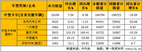 8月中型卡車(含非完整車輛)產(chǎn)量表(單位:輛)